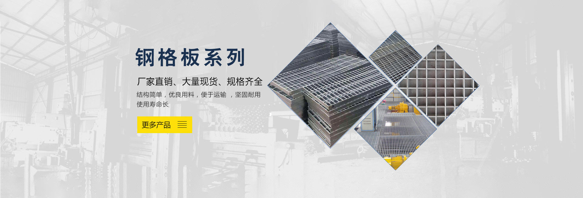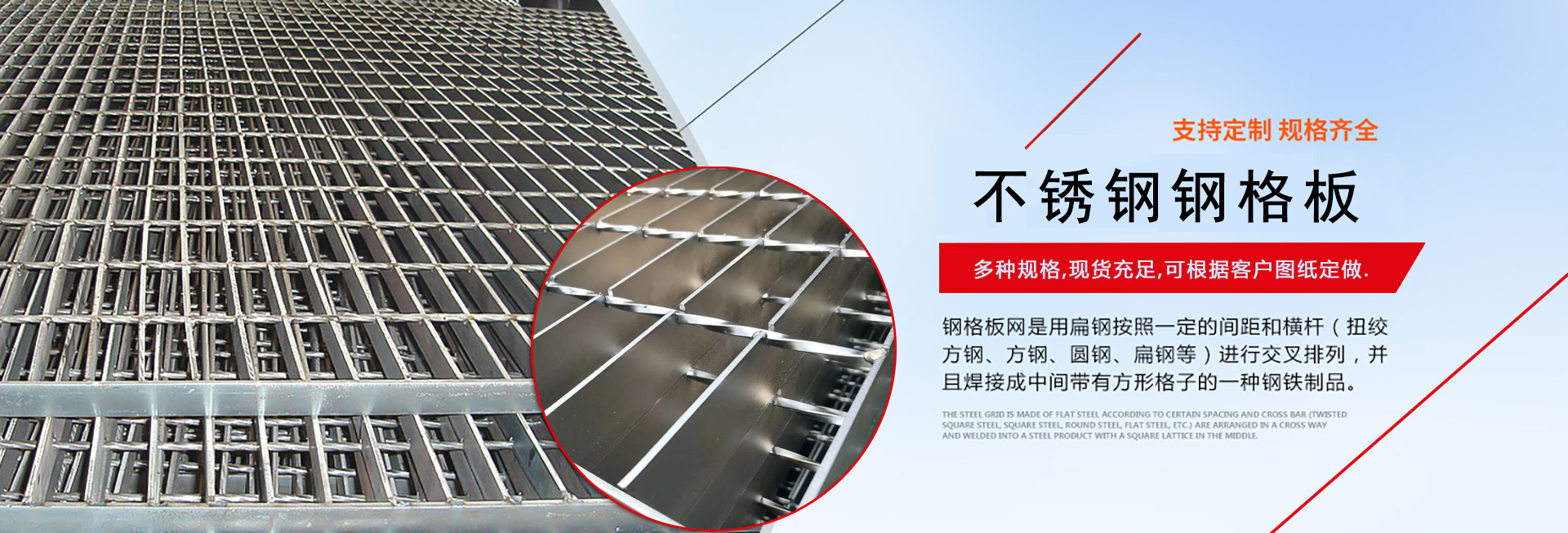 我廠主要生產鋼格板,鋼格柵板,踏步板,溝蓋板,養殖地網,護欄網等產品是絲網行業生產規模較大的企業之一,規格多樣,品種齊全